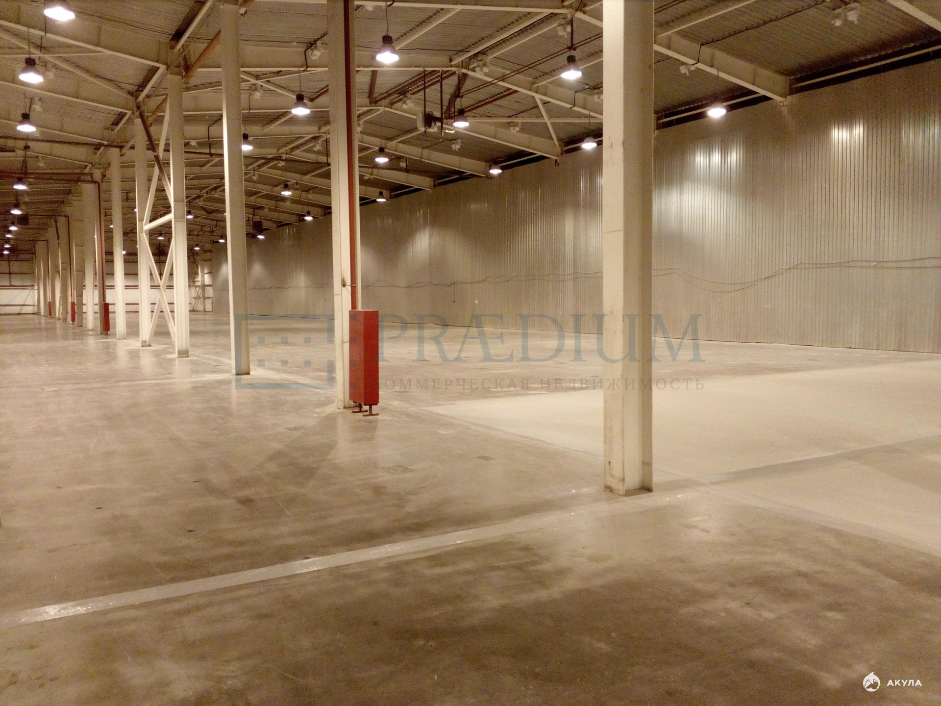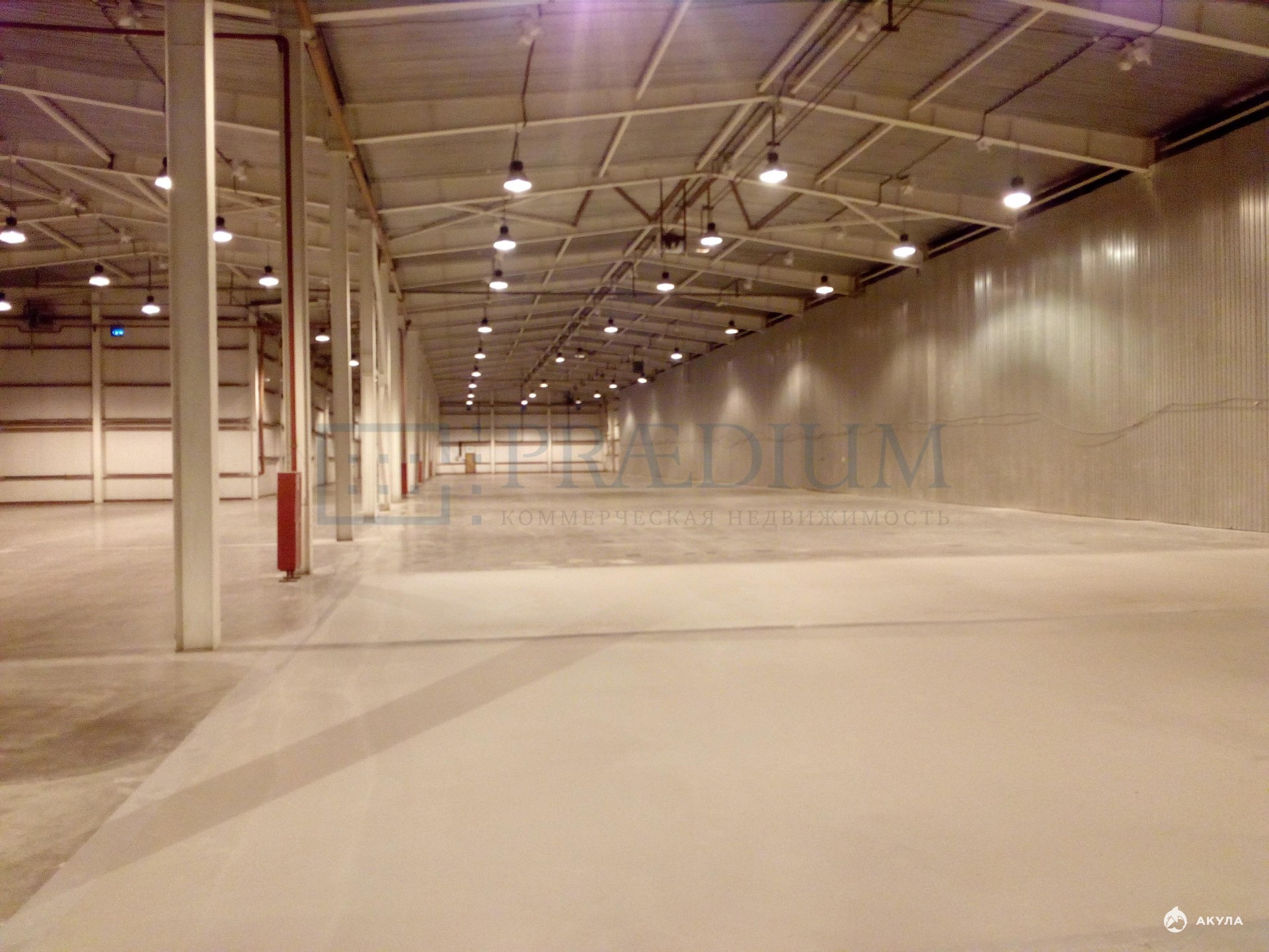 Полы - бетон с антипылью. Нагрузка на пол - 5 т/м²