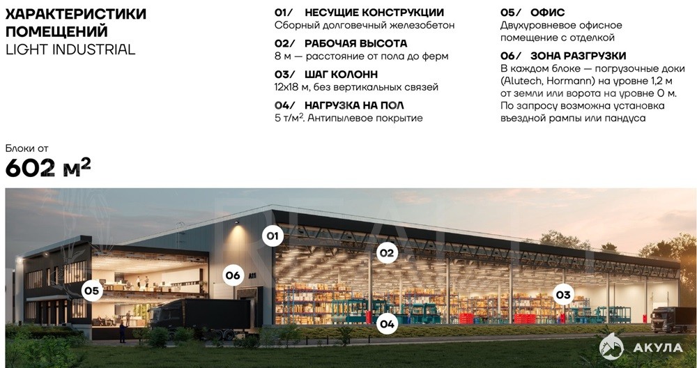 Продажа помещений под склад и производство в Промышленном парке Балашиха, формат light industrial.