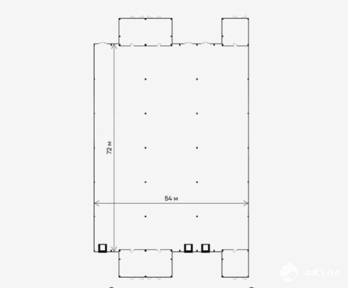 Рабочая высота потолков в промышленном помещении 8 м. Шаг колонн 12х18 м, без вертикальных связей.