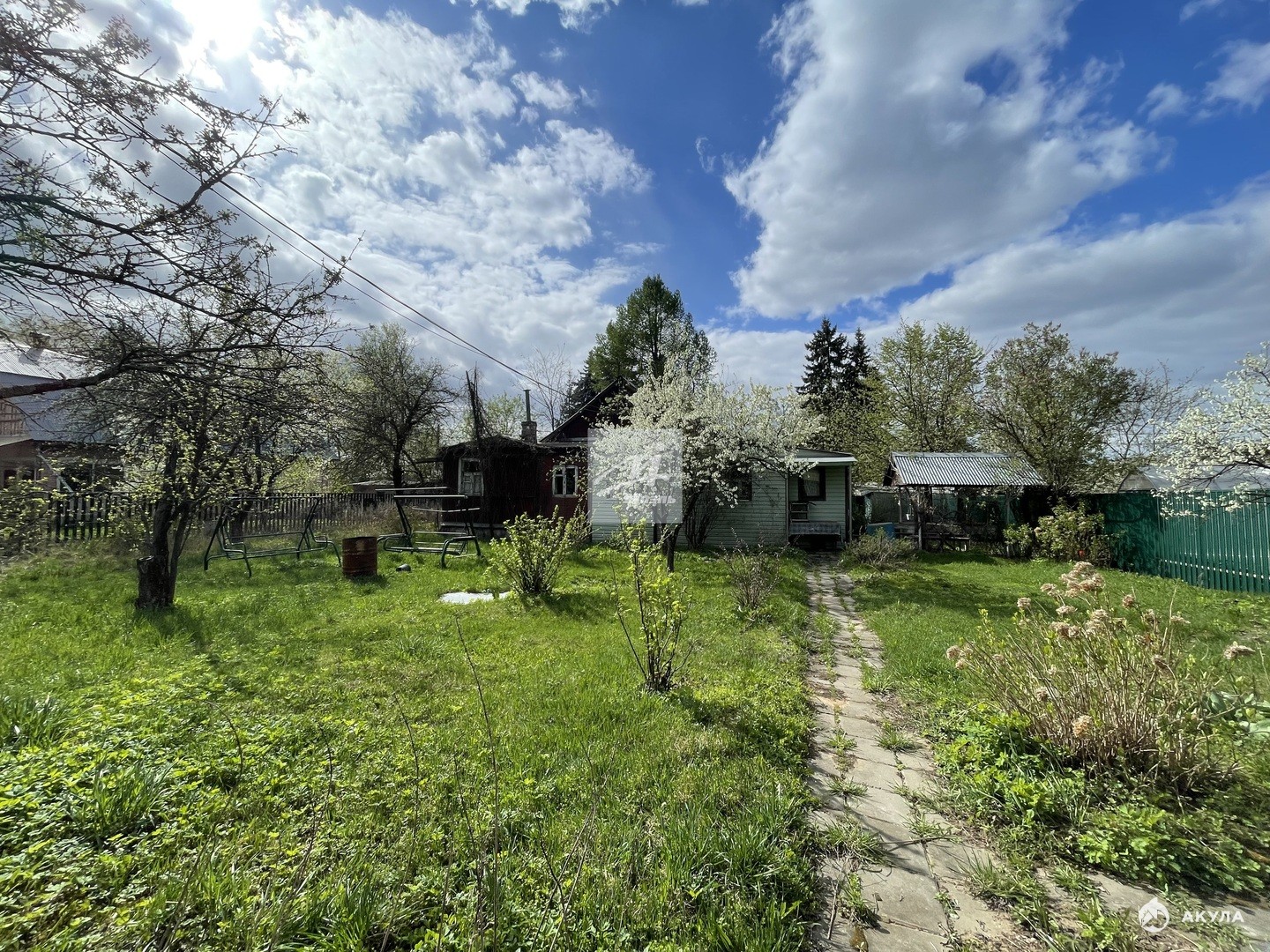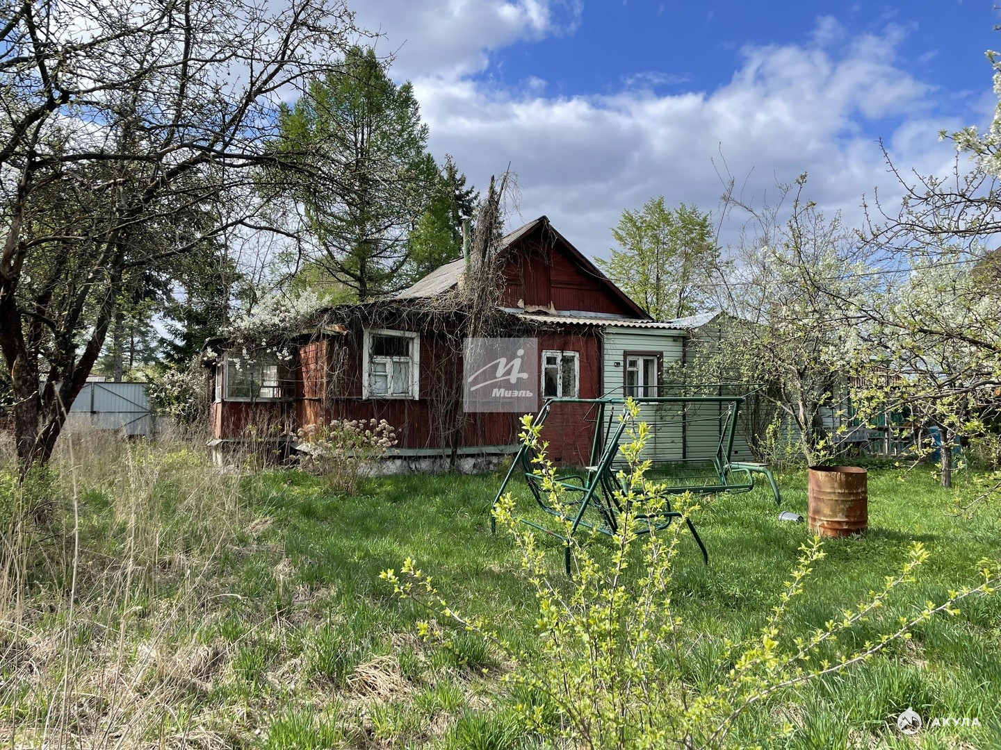 Участок правильной прямоугольной формы (~35Х 26), огорожен, ухожен и красив в любое время года. Основной дом-47 кв.м можно под снос, дополнительные строения: гостевой дом, гараж, беседка.