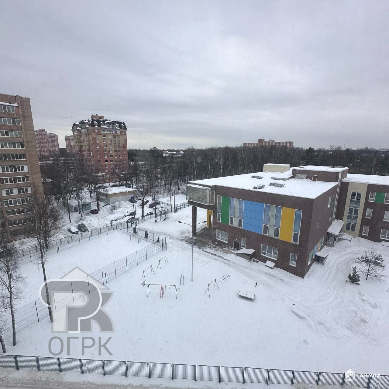 С окон открывается прекрасный вид на школу и сквер.