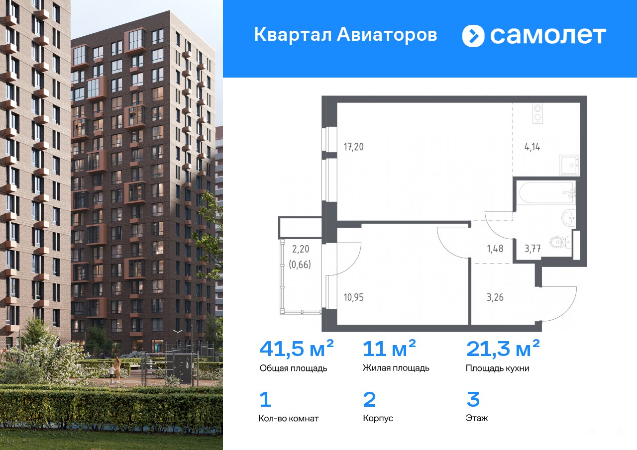 Строим кварталы для жизни с заботой о будущем. Предлагается 1-комнатная квартира комфорт-класса 41, 46 кв.м в корпусе 2 на 3 этаже, в ЖК «Квартал Авиаторов»