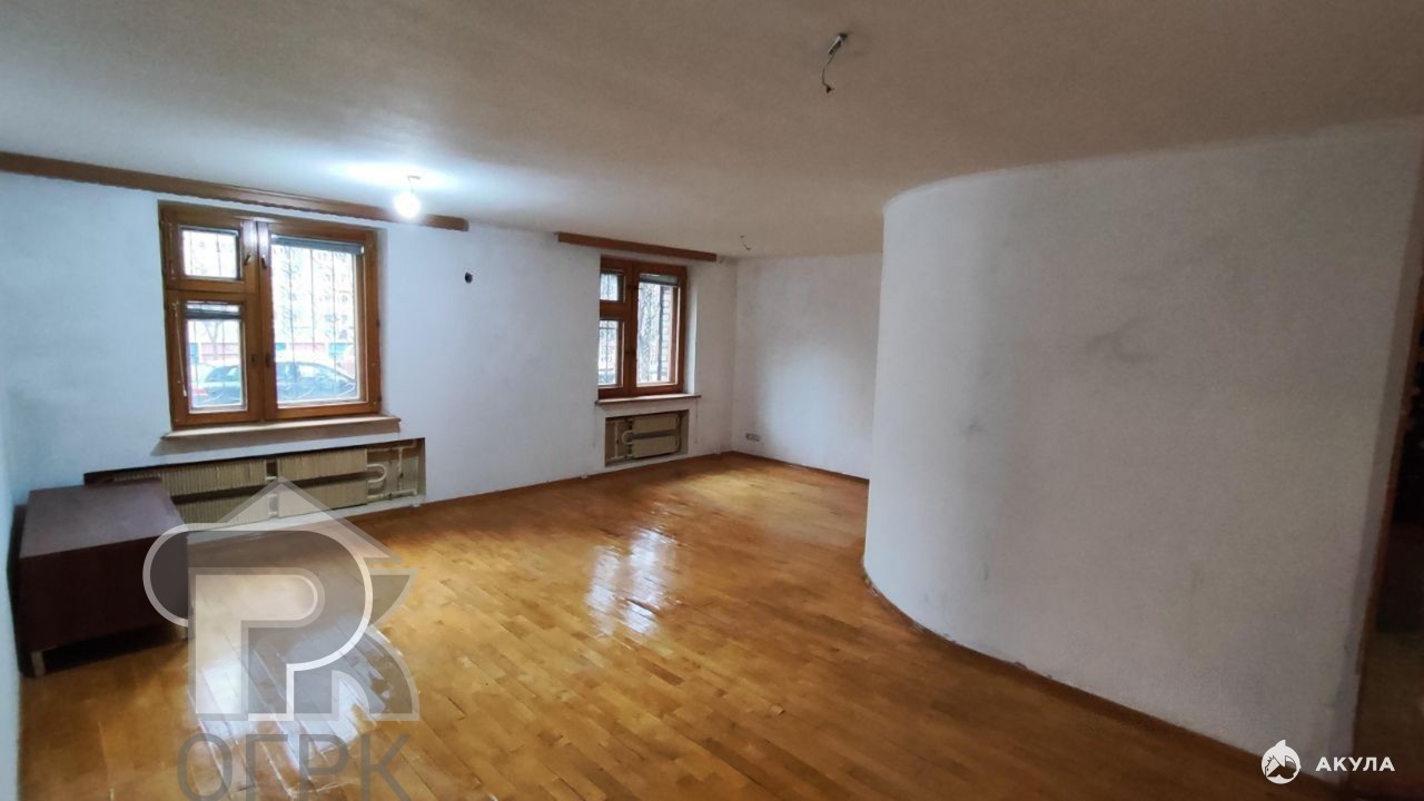 Окна выходят на две стороны. Высокий первый этаж.