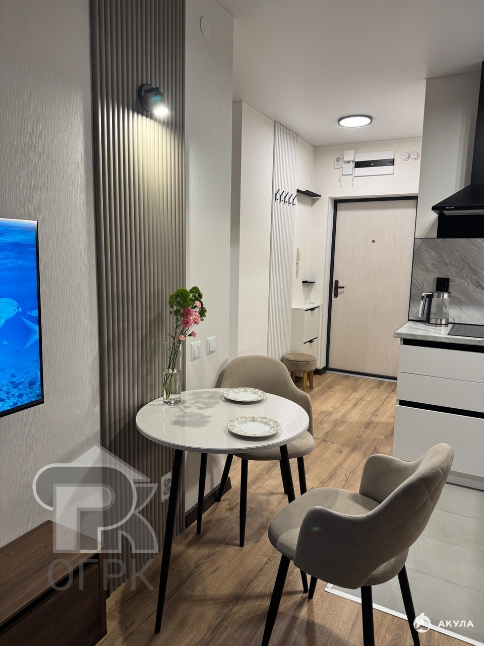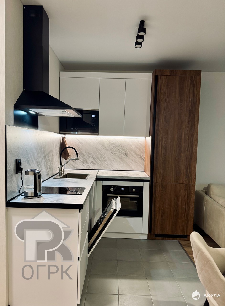Квартира выполнена с дизайнерским ремонтом, который сочетает нейтральную палитру и качественные материалы. Вас встретит светлая кухня-гостиная с полным набором встроенной техники, включая посудомоечную машину, и гарнитуром для комфортного приготовления пищи. Отдельная спальня позволяет организовать приватное пространство для отдыха. Санузел совмещенный, оборудован современной сантехникой и ванной. Большим преимуществом является наличие балкона с видом на спокойный двор, что добавляет квартире дополнительное пространство и свет. Высокие потолки 2.7 метра усиливают ощущение простора.